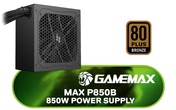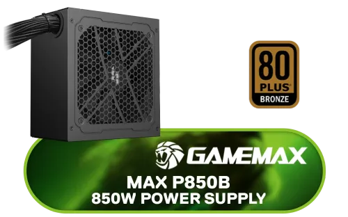 Gamemax MAX P850B 850W Power Supply / 850W 80 Plus Bronze ATX 3.1 / Full Intel ATX 3.1 Support for 200% System & 300% GPU Power Excursions / 100% All-Japanese Capacitors (Rubycon, NCC, Nichicon) / 100% Pure Copper Output Cables / IEC 62368-1:2018 TÜV SÜD Certified / MAX P850B