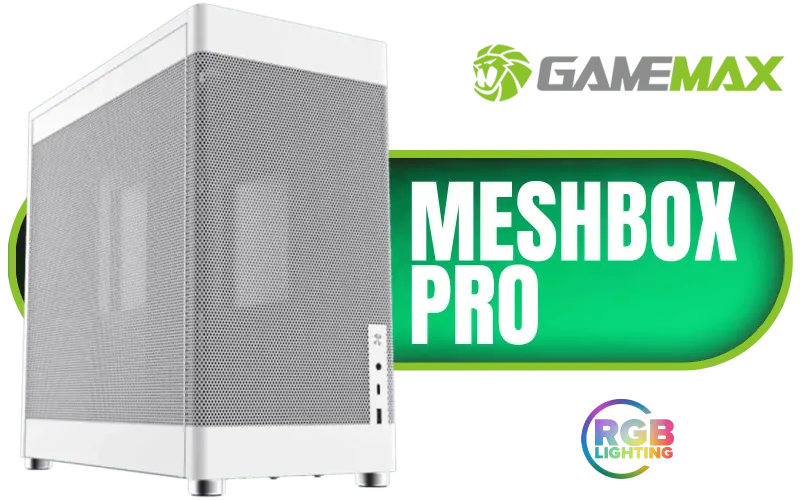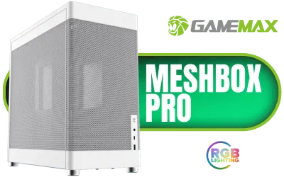 Gamemax MeshBox PRO ATX Mid-Tower Gaming Case - White / Supports 240mm liquid cooling / Supports GPUs up to 355mm / Full dust-proof coverage for cleanliness / Bottom fan boosts GPU cooling / MESH-BOX-PRO-WT
