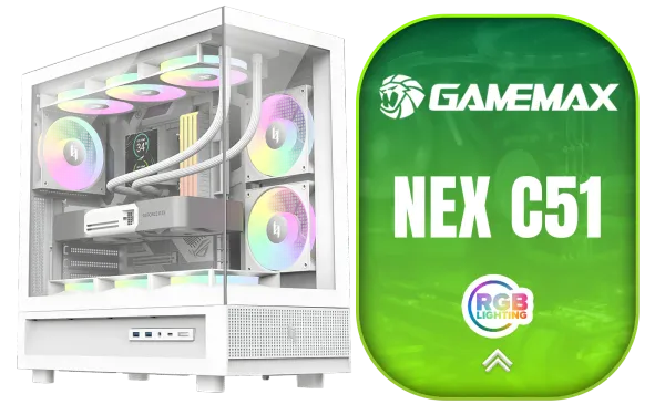 GAMEMAX NEX C51 WH ATX Gaming PC Case – White
