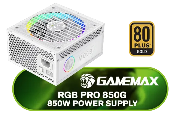 Gamemax RGB PRO 850P 850W Power Supply - White / 850W 80 Plus Gold ATX 3.1 / Native 12V-2x6 GPU Connector / Adaptive 14cm Smart Fan / Premium Japanese 105°C & Solid Capacitors / 25-Mode Customizable RGB with ARGB Sync / RGB PRO 850G WH + FREE DELIVERY !