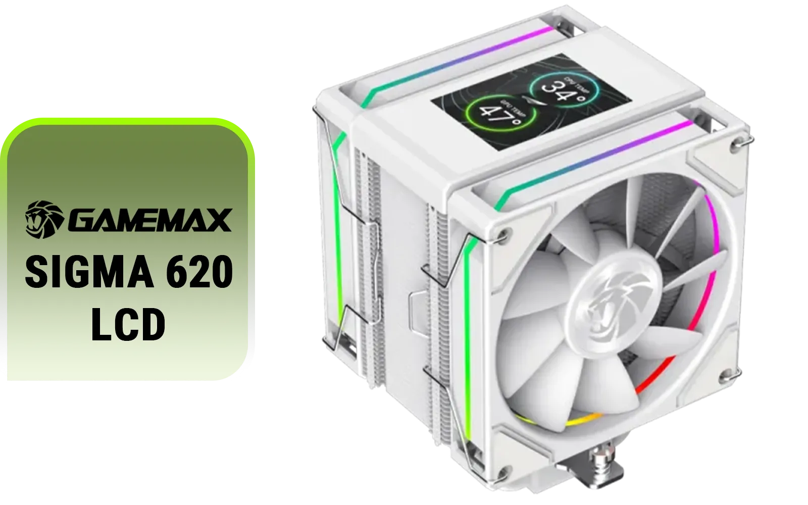 GameMax SIGMA-620-LCD-WH 2.8" LCD Air Cooler — 245W