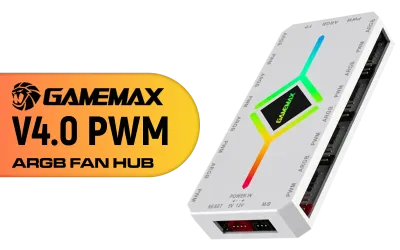 Gamemax V4.0 ARGB+PWM Fan Hub — White, Magnetic