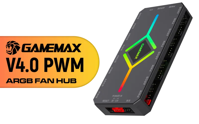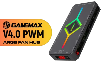Gamemax V4.0 ARGB+PWM Fan Hub — Magnetic, 5V 3-pin Sync