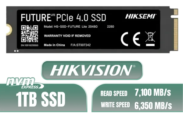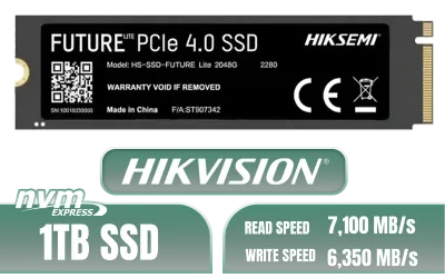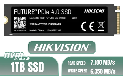Hikvision Future Lite 1TB M.2 PCIe Gen 4 NVMe Solid State Drive / Maximum Read Speed 7,100 MB/s / Maximum Write Speed 6,350 MB/s / Ample Storage For Large Files / Ultra-Fast Data Transfer Speeds / Low-Latency Read And Write Performance / High-Performance Gaming And Content Creation / HS-SSD-FUTURE LITE 1024G + FREE DELIVERY !