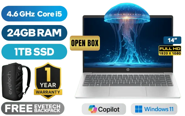 [OPEN BOX] HP 14-ep0009ni 13th Gen Intel® Core™ i5-1335U up to 4.6GHz Processor, 12MB Cache, 10x Cores, 12x Threads / 24GB DDR4 RAM / 1TB Ultra-Fast NVMe SSD / 14" FHD (1920 x 1080) Anti-Glare Display / Integrated Intel Iris Xe Graphics / Windows 11 Home 64bit / Realtek RTL8852BE-VS WiFi 6 Wireless LAN / Bluetooth 5.3 / 1080p HD Camera with Pribacy Shutter / 2 x USB Type-A / 1 x USB Type-C / 1 x HDMI / 1x Headphone And Microphone Combo Jack / Dual Speakers / 1 Year Warranty / HP 14-ep0009ni Intel Core i5 Laptop Deal[OPEN BOX] HP 14-ep0009ni 13th Gen Intel® Core™ i5-1335U up to 4.6GHz Processor, 12MB Cache, 10x Cores, 12x Threads / 24GB DDR4 RAM / 1TB Ultra-Fast NVMe SSD / 14" FHD (1920 x 1080) Anti-Glare Display / Integrated Intel Iris Xe Graphics / Windows 11 Home 64bit / Realtek RTL8852BE-VS WiFi 6 Wireless LAN / Bluetooth 5.3 / 1080p HD Camera with Pribacy Shutter / 2 x USB Type-A / 1 x USB Type-C / 1 x HDMI / 1x Headphone And Microphone Combo Jack / Dual Speakers / 1 Year Warranty / HP 14-ep0009ni Intel Core i5 Laptop Deal [B16Q0EA-1yr/24GB/1TB] / [+] GET FREE EVETECH NEO Premium Gaming Backpack+ FREE DELIVERY !
