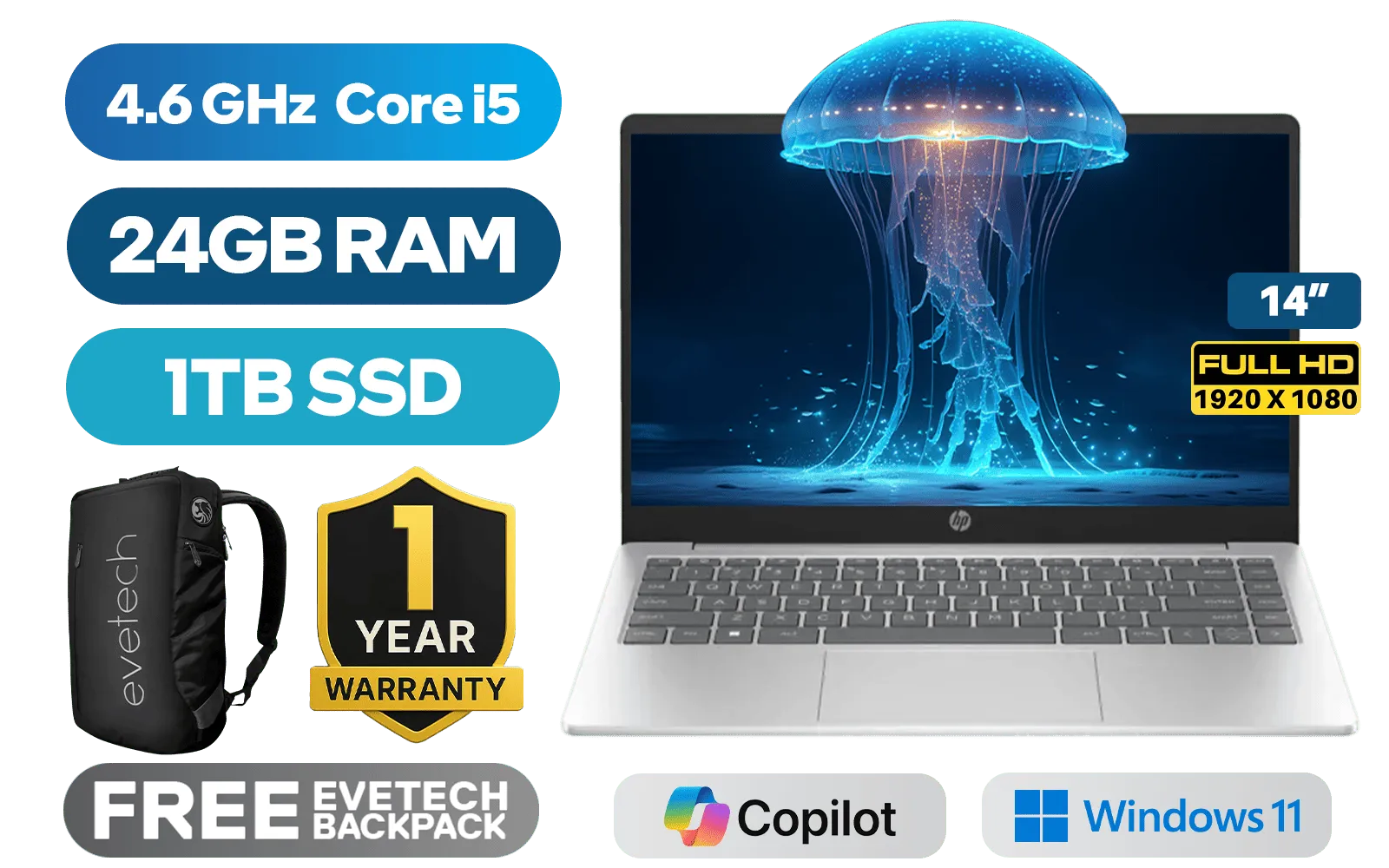 [OPEN BOX] HP 14-ep0009ni 13th Gen Intel® Core™ i5-1335U up to 4.6GHz Processor, 12MB Cache, 10x Cores, 12x Threads / 24GB DDR4 RAM / 1TB Ultra-Fast NVMe SSD / 14" FHD (1920 x 1080) Anti-Glare Display / Integrated Intel Iris Xe Graphics / Windows 11 Home 64bit / Realtek RTL8852BE-VS WiFi 6 Wireless LAN / Bluetooth 5.3 / 1080p HD Camera with Pribacy Shutter / 2 x USB Type-A / 1 x USB Type-C / 1 x HDMI / 1x Headphone And Microphone Combo Jack / Dual Speakers / 1 Year Warranty / HP 14-ep0009ni Intel Core i5 Laptop Deal[OPEN BOX] HP 14-ep0009ni 13th Gen Intel® Core™ i5-1335U up to 4.6GHz Processor, 12MB Cache, 10x Cores, 12x Threads / 24GB DDR4 RAM / 1TB Ultra-Fast NVMe SSD / 14" FHD (1920 x 1080) Anti-Glare Display / Integrated Intel Iris Xe Graphics / Windows 11 Home 64bit / Realtek RTL8852BE-VS WiFi 6 Wireless LAN / Bluetooth 5.3 / 1080p HD Camera with Pribacy Shutter / 2 x USB Type-A / 1 x USB Type-C / 1 x HDMI / 1x Headphone And Microphone Combo Jack / Dual Speakers / 1 Year Warranty / HP 14-ep0009ni Intel Core i5 Laptop Deal [B16Q0EA-1yr/24GB/1TB] / [+] GET FREE EVETECH NEO Premium Gaming Backpack+ FREE DELIVERY !