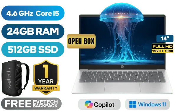 [OPEN BOX] HP 14-ep0009ni 13th Gen Intel® Core™ i5-1335U up to 4.6GHz Processor, 12MB Cache, 10x Cores, 12x Threads / 24GB DDR4 RAM / 512GB Ultra-Fast NVMe SSD / 14" FHD (1920 x 1080) Anti-Glare Display / Integrated Intel Iris Xe Graphics / Windows 11 Home 64bit / Realtek RTL8852BE-VS WiFi 6 Wireless LAN / Bluetooth 5.3 / 1080p HD Camera with Pribacy Shutter / 2 x USB Type-A / 1 x USB Type-C / 1 x HDMI / 1x Headphone And Microphone Combo Jack / Dual Speakers / 1 Year Warranty / HP 14-ep0009ni Intel Core i5 Laptop Deal[OPEN BOX] HP 14-ep0009ni 13th Gen Intel® Core™ i5-1335U up to 4.6GHz Processor, 12MB Cache, 10x Cores, 12x Threads / 24GB DDR4 RAM / 512GB Ultra-Fast NVMe SSD / 14" FHD (1920 x 1080) Anti-Glare Display / Integrated Intel Iris Xe Graphics / Windows 11 Home 64bit / Realtek RTL8852BE-VS WiFi 6 Wireless LAN / Bluetooth 5.3 / 1080p HD Camera with Pribacy Shutter / 2 x USB Type-A / 1 x USB Type-C / 1 x HDMI / 1x Headphone And Microphone Combo Jack / Dual Speakers / 1 Year Warranty / HP 14-ep0009ni Intel Core i5 Laptop Deal [B16Q0EA-1yr/24GB] / [+] GET FREE EVETECH NEO Premium Gaming Backpack+ FREE DELIVERY !