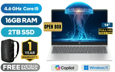 [OPEN BOX] HP 14-ep0009ni 13th Gen Intel® Core™ i5-1335U up to 4.6GHz Processor, 12MB Cache, 10x Cores, 12x Threads / 16GB DDR4 RAM / 2TB Ultra-Fast NVMe SSD / 14" FHD (1920 x 1080) Anti-Glare Display / Integrated Intel Iris Xe Graphics / Windows 11 Home 64bit / Realtek RTL8852BE-VS WiFi 6 Wireless LAN / Bluetooth 5.3 / 1080p HD Camera with Pribacy Shutter / 2 x USB Type-A / 1 x USB Type-C / 1 x HDMI / 1x Headphone And Microphone Combo Jack / Dual Speakers / 1 Year Warranty / HP 14-ep0009ni Intel Core i5 Laptop Deal[OPEN BOX] HP 14-ep0009ni 13th Gen Intel® Core™ i5-1335U up to 4.6GHz Processor, 12MB Cache, 10x Cores, 12x Threads / 16GB DDR4 RAM / 2TB Ultra-Fast NVMe SSD / 14" FHD (1920 x 1080) Anti-Glare Display / Integrated Intel Iris Xe Graphics / Windows 11 Home 64bit / Realtek RTL8852BE-VS WiFi 6 Wireless LAN / Bluetooth 5.3 / 1080p HD Camera with Pribacy Shutter / 2 x USB Type-A / 1 x USB Type-C / 1 x HDMI / 1x Headphone And Microphone Combo Jack / Dual Speakers / 1 Year Warranty / HP 14-ep0009ni Intel Core i5 Laptop Deal [B16Q0EA-1yr/2TB] / [+] GET FREE EVETECH NEO Premium Gaming Backpack+ FREE DELIVERY !