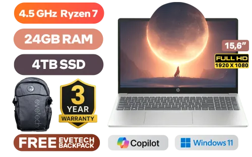 HP Laptop 15-fc0000ni AMD Ryzen 7 7730U up to 4.5GHz Processor with AMD Max Boost Clock Technology, 20MB Cache, 8x Cores, 16x Threads / 24GB DDR4 RAM / 4TB Ultra-Fast NVME SSD / 15.6" FHD 1920 x 1080 Anti-Glare Display / Integrated AMD Radeon™ Graphics / Windows 11 Home 64bit / Realtek RTL8852BE-VS WiFi 6 Wireless LAN / Bluetooth 5.3 / 1 x USB Type C / 2 x USB Type-A / 1 x HDMI / 1x Headphone And Microphone Combo Jack / HP True Vision 720p HD camera with integrated dual array digital microphones / Full-size Soft Grey Keyboard with Numeric Keypad / HP 15-fc0000ni Ryzen 7 LaptopHP Laptop 15-fc0000ni AMD Ryzen 7 7730U up to 4.5GHz Processor with AMD Max Boost Clock Technology, 20MB Cache, 8x Cores, 16x Threads / 24GB DDR4 RAM / 4TB Ultra-Fast NVME SSD / 15.6" FHD 1920 x 1080 Anti-Glare Display / Integrated AMD Radeon™ Graphics / Windows 11 Home 64bit / Realtek RTL8852BE-VS WiFi 6 Wireless LAN / Bluetooth 5.3 / 1 x USB Type C / 2 x USB Type-A / 1 x HDMI / 1x Headphone And Microphone Combo Jack / HP True Vision 720p HD camera with integrated dual array digital microphones / Full-size Soft Grey Keyboard with Numeric Keypad / HP 15-fc0000ni Ryzen 7 Laptop [9J3C1EA/24GB/4TB] + FREE DELIVERY !