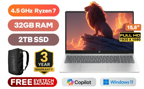 HP Laptop 15-fc0044ni AMD Ryzen 7 7730U up to 4.5GHz Processor, 20MB Cache, 8x Cores, 16x Threads / 32GB DDR4 RAM / 2TB Ultra-Fast NVME SSD / 15.6" FHD (1920 x 1080) Anti-Glare Display / Integrated AMD Radeon™ Graphics / Windows 11 Home 64bit / Realtek RTL8852BE-VT WiFi 6 Wireless LAN / Bluetooth 5.4 / HP True Vision 720p HD Web Camera / 2 x USB Type-A / 1 x USB Type-C / 1 x HDMI / 1x Headphone And Microphone Combo Jack / US Full-size Keyboard / Integrated Dual Speakers / HP 15-fc0044ni Ryzen 7 Laptop DealHP Laptop 15-fc0044ni AMD Ryzen 7 7730U up to 4.5GHz Processor, 20MB Cache, 8x Cores, 16x Threads / 32GB DDR4 RAM / 2TB Ultra-Fast NVME SSD / 15.6" FHD (1920 x 1080) Anti-Glare Display / Integrated AMD Radeon™ Graphics / Windows 11 Home 64bit / Realtek RTL8852BE-VT WiFi 6 Wireless LAN / Bluetooth 5.4 / HP True Vision 720p HD Web Camera / 2 x USB Type-A / 1 x USB Type-C / 1 x HDMI / 1x Headphone And Microphone Combo Jack / US Full-size Keyboard / Integrated Dual Speakers / HP 15-fc0044ni Ryzen 7 Laptop Deal [BZ1C4EA/32GB/2TB] / [+] GET FREE EVETECH NEO Premium Gaming Backpack / 3 YEARS WARRANTY + FREE DELIVERY !