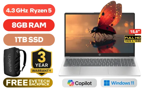 HP 15-fc0057ni AMD Ryzen 5 7520U up to 4.3GHz Processor, 6MB Cache, 4x Cores, 8x Threads / 8GB LPDDR5 RAM / 1TB Ultra-Fast NVME SSD / 15.6" FHD (1920 x 1080) Anti-Glare Display / Integrated AMD Radeon™ Graphics / Windows 11 Home 64bit / Realtek RTL8852BE-VT WiFi 6 Wireless LAN / Bluetooth 5.4 / 720p HP Web Camera / 2 x USB Type-A / 1 x USB Type-C / 1 x HDMI / 1x Headphone And Microphone Combo Jack / Full-size Keyboard / Dual Speakers / HP 15-fc0057ni Ryzen 5 Laptop DealHP 15-fc0057ni AMD Ryzen 5 7520U up to 4.3GHz Processor, 6MB Cache, 4x Cores, 8x Threads / 8GB LPDDR5 RAM / 1TB Ultra-Fast NVME SSD / 15.6" FHD (1920 x 1080) Anti-Glare Display / Integrated AMD Radeon™ Graphics / Windows 11 Home 64bit / Realtek RTL8852BE-VT WiFi 6 Wireless LAN / Bluetooth 5.4 / 720p HP Web Camera / 2 x USB Type-A / 1 x USB Type-C / 1 x HDMI / 1x Headphone And Microphone Combo Jack / Full-size Keyboard / Dual Speakers / HP 15-fc0057ni Ryzen 5 Laptop Deal [C29PMEA/1TB] / 3 YEARS WARRANTY / [+] GET FREE EVETECH DASH Premium Gaming Backpack+ FREE DELIVERY !