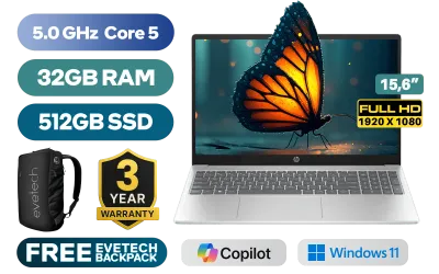HP 15-fc0085ni Intel Core 5-120U up to 5.0GHz Processor, 12MB Cache, 10x Cores, 12x Threads / 32GB DDR4 RAM / 512GB Ultra-Fast NVME SSD / 15.6" FHD (1920 x 1080) Anti-Glare Display / Integrated Intel Graphics / Windows 11 Home 64bit / Realtek RTL8852BE-VT WiFi 6 Wireless LAN / Bluetooth 5.3 / HP True Vision 720p HD Web Camera / 2 x USB Type-A / 1 x USB Type-C / 1 x HDMI / 1x Headphone And Microphone Combo Jack / Full-size Keyboard / Dual Speakers / HP 15-fc0085ni Core 5 Laptop DealHP 15-fc0085ni Intel Core 5-120U up to 5.0GHz Processor, 12MB Cache, 10x Cores, 12x Threads / 32GB DDR4 RAM / 512GB Ultra-Fast NVME SSD / 15.6" FHD (1920 x 1080) Anti-Glare Display / Integrated Intel Graphics / Windows 11 Home 64bit / Realtek RTL8852BE-VT WiFi 6 Wireless LAN / Bluetooth 5.3 / HP True Vision 720p HD Web Camera / 2 x USB Type-A / 1 x USB Type-C / 1 x HDMI / 1x Headphone And Microphone Combo Jack / Full-size Keyboard / Dual Speakers / HP 15-fc0085ni Core 5 Laptop Deal [BZ1D4EA/32GB] / 3 YEARS WARRANTY / [+] GET FREE EVETECH NEO Premium Gaming Backpack / [+] GET FREE Promate ProPods High-Definition TWS Wireless Earphones+ FREE DELIVERY !