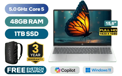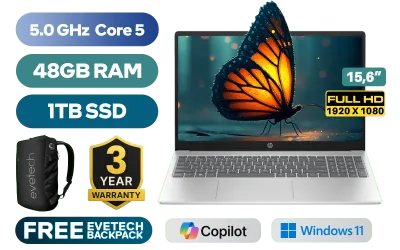 HP 15-fc0085ni Intel Core 5-120U up to 5.0GHz Processor, 12MB Cache, 10x Cores, 12x Threads / 48GB DDR4 RAM / 1TB Ultra-Fast NVME SSD / 15.6" FHD (1920 x 1080) Anti-Glare Display / Integrated Intel Graphics / Windows 11 Home 64bit / Realtek RTL8852BE-VT WiFi 6 Wireless LAN / Bluetooth 5.3 / HP True Vision 720p HD Web Camera / 2 x USB Type-A / 1 x USB Type-C / 1 x HDMI / 1x Headphone And Microphone Combo Jack / Full-size Keyboard / Dual Speakers / HP 15-fc0085ni Core 5 Laptop DealHP 15-fc0085ni Intel Core 5-120U up to 5.0GHz Processor, 12MB Cache, 10x Cores, 12x Threads / 48GB DDR4 RAM / 1TB Ultra-Fast NVME SSD / 15.6" FHD (1920 x 1080) Anti-Glare Display / Integrated Intel Graphics / Windows 11 Home 64bit / Realtek RTL8852BE-VT WiFi 6 Wireless LAN / Bluetooth 5.3 / HP True Vision 720p HD Web Camera / 2 x USB Type-A / 1 x USB Type-C / 1 x HDMI / 1x Headphone And Microphone Combo Jack / Full-size Keyboard / Dual Speakers / HP 15-fc0085ni Core 5 Laptop Deal [BZ1D4EA/48GB/1TB] / 3 YEARS WARRANTY / [+] GET FREE EVETECH NEO Premium Gaming Backpack / [+] GET FREE Promate ProPods High-Definition TWS Wireless Earphones+ FREE DELIVERY !