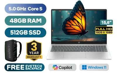 HP 15-fc0085ni Intel Core 5-120U up to 5.0GHz Processor, 12MB Cache, 10x Cores, 12x Threads / 48GB DDR4 RAM / 512GB Ultra-Fast NVME SSD / 15.6" FHD (1920 x 1080) Anti-Glare Display / Integrated Intel Graphics / Windows 11 Home 64bit / Realtek RTL8852BE-VT WiFi 6 Wireless LAN / Bluetooth 5.3 / HP True Vision 720p HD Web Camera / 2 x USB Type-A / 1 x USB Type-C / 1 x HDMI / 1x Headphone And Microphone Combo Jack / Full-size Keyboard / Dual Speakers / HP 15-fc0085ni Core 5 Laptop DealHP 15-fc0085ni Intel Core 5-120U up to 5.0GHz Processor, 12MB Cache, 10x Cores, 12x Threads / 48GB DDR4 RAM / 512GB Ultra-Fast NVME SSD / 15.6" FHD (1920 x 1080) Anti-Glare Display / Integrated Intel Graphics / Windows 11 Home 64bit / Realtek RTL8852BE-VT WiFi 6 Wireless LAN / Bluetooth 5.3 / HP True Vision 720p HD Web Camera / 2 x USB Type-A / 1 x USB Type-C / 1 x HDMI / 1x Headphone And Microphone Combo Jack / Full-size Keyboard / Dual Speakers / HP 15-fc0085ni Core 5 Laptop Deal [BZ1D4EA/48GB] / 3 YEARS WARRANTY / [+] GET FREE EVETECH NEO Premium Gaming Backpack / [+] GET FREE Promate ProPods High-Definition TWS Wireless Earphones+ FREE DELIVERY !