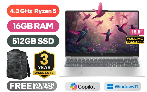 HP 15-fc0099ni AMD Ryzen 5 7520U up to 4.3GHz Processor, 6MB Cache, 4x Cores, 8x Threads / 16GB DDR5 RAM / 512GB Ultra-Fast NVME SSD / 15.6" FHD (1920 x 1080) Anti-Glare Display / Integrated Radeon Graphics / Windows 11 Home 64bit / Realtek 8852BE-VT WiFi 6 Wireless LAN / Bluetooth 5.4 / 1080p FHD Camera / 2 x USB Type-A / 1 x USB Type-C / 1 x HDMI / 1x Headphone And Microphone Combo Jack / Dual Speakers / HP 15-fc0099ni Ryzen 5 Laptop DealHP 15-fc0099ni AMD Ryzen 5 7520U up to 4.3GHz Processor, 6MB Cache, 4x Cores, 8x Threads / 16GB DDR5 RAM / 512GB Ultra-Fast NVME SSD / 15.6" FHD (1920 x 1080) Anti-Glare Display / Integrated Radeon Graphics / Windows 11 Home 64bit / Realtek 8852BE-VT WiFi 6 Wireless LAN / Bluetooth 5.4 / 1080p FHD Camera / 2 x USB Type-A / 1 x USB Type-C / 1 x HDMI / 1x Headphone And Microphone Combo Jack / Dual Speakers / HP 15-fc0099ni Ryzen 5 Laptop Deal [D2JJ2EA] / 3 YEARS WARRANTY / [+] GET FREE EVETECH DASH Premium Gaming Backpack+ FREE DELIVERY !