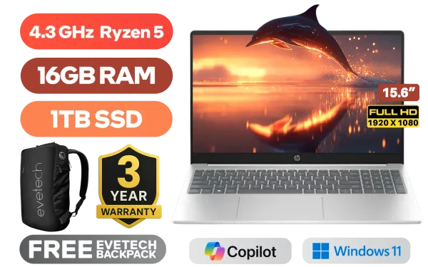 HP 15-fc0102ni AMD Ryzen 5 7520U up to 4.3GHz Processor, 6MB Cache, 4x Cores, 8x Threads / 16GB DDR5 RAM / 1TB Ultra-Fast NVME SSD / 15.6" FHD (1920 x 1080) Anti-Glare Display / Integrated Radeon Graphics / Windows 11 Home 64bit / Realtek 8852BE-VT WiFi 6 Wireless LAN / Bluetooth 5.4 / 1080p FHD Camera / 2 x USB Type-A / 1 x USB Type-C / 1 x HDMI / 1x Headphone And Microphone Combo Jack / Dual Speakers / HP 15-fc0102ni Ryzen 5 Laptop DealHP 15-fc0102ni AMD Ryzen 5 7520U up to 4.3GHz Processor, 6MB Cache, 4x Cores, 8x Threads / 16GB DDR5 RAM / 1TB Ultra-Fast NVME SSD / 15.6" FHD (1920 x 1080) Anti-Glare Display / Integrated Radeon Graphics / Windows 11 Home 64bit / Realtek 8852BE-VT WiFi 6 Wireless LAN / Bluetooth 5.4 / 1080p FHD Camera / 2 x USB Type-A / 1 x USB Type-C / 1 x HDMI / 1x Headphone And Microphone Combo Jack / Dual Speakers / HP 15-fc0102ni Ryzen 5 Laptop Deal [D2JJ4EA/1TB] / 3 YEARS WARRANTY / [+] GET FREE EVETECH NEO Premium Gaming Backpack+ FREE DELIVERY !