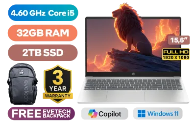 HP 15-fd0032ni 13th Gen Intel® Core™ i5-1334U up to 4.60GHz Processor, 12MB Cache, 10x Cores, 12x Threads / 32GB DDR4 RAM / 2TB Ultra-Fast NVME SSD / 15.6" FHD 1920 x 1080 Anti-Glare Display / Integrated Intel® Iris® Xe Graphics, DirectX 12 Support / Windows 11 Home 64bit / MediaTek MT7902 Wi-Fi 6E Wireless LAN / Bluetooth 5.3 / 2 x USB Type-A / 1 x USB Type-C / 1 x HDMI / 1x Headphone And Microphone Combo Jack / HP True Vision 720p HD camera / Full-size Grey Keyboard / HP 15-fd0032ni 13th Gen Intel® Core™ i5 Laptop DealHP 15-fd0032ni 13th Gen Intel® Core™ i5-1334U up to 4.60GHz Processor, 12MB Cache, 10x Cores, 12x Threads / 32GB DDR4 RAM / 2TB Ultra-Fast NVME SSD / 15.6" FHD 1920 x 1080 Anti-Glare Display / Integrated Intel® Iris® Xe Graphics, DirectX 12 Support / Windows 11 Home 64bit / MediaTek MT7902 Wi-Fi 6E Wireless LAN / Bluetooth 5.3 / 2 x USB Type-A / 1 x USB Type-C / 1 x HDMI / 1x Headphone And Microphone Combo Jack / HP True Vision 720p HD camera / Full-size Grey Keyboard / HP 15-fd0032ni 13th Gen Intel® Core™ i5 Laptop Deal [A73TKEA/32GB/2TB] / 3 YEARS WARRANTY / [+] GET FREE Promate xWatch RM Fitness Tracker Smartwatch / [+] GET FREE EVETECH FLUX Premium Gaming Backpack+ FREE DELIVERY !