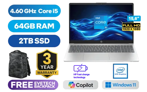 HP 15-fd0040ni 13th Gen Intel® Core™ i5-1334U up to 4.60GHz Processor, 12MB Cache, 10x Cores, 12x Threads / 64GB DDR4 RAM / 2TB Ultra-Fast NVME SSD / 15.6" FHD 1920 x 1080 Anti-Glare Display / Integrated UHD Graphics, DirectX 12 Support / Windows 11 Home 64bit / Realtek Wi-Fi 6 Wireless LAN / Bluetooth 5.3 / 2 x USB Type-A / 1 x USB Type-C / 1 x HDMI / 1x Headphone And Microphone Combo Jack / HP True Vision 720p HD camera / Full-size Grey Keyboard / HP 15-fd0040ni 13th Gen Intel® Core™ i5 Laptop DealHP 15-fd0040ni 13th Gen Intel® Core™ i5-1334U up to 4.60GHz Processor, 12MB Cache, 10x Cores, 12x Threads / 64GB DDR4 RAM / 2TB Ultra-Fast NVME SSD / 15.6" FHD 1920 x 1080 Anti-Glare Display / Integrated UHD Graphics, DirectX 12 Support / Windows 11 Home 64bit / Realtek Wi-Fi 6 Wireless LAN / Bluetooth 5.3 / 2 x USB Type-A / 1 x USB Type-C / 1 x HDMI / 1x Headphone And Microphone Combo Jack / HP True Vision 720p HD camera / Full-size Grey Keyboard / HP 15-fd0040ni 13th Gen Intel® Core™ i5 Laptop Deal [B19GWEA/64GB/2TB] / 3 YEARS WARRANTY / [+] GET FREE EVETECH DASH Premium Gaming Backpack / [+] GET FREE Promate Transpods TWS in Ear Earbuds+ FREE DELIVERY !