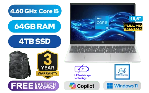 HP 15-fd0040ni 13th Gen Intel® Core™ i5-1334U up to 4.60GHz Processor, 12MB Cache, 10x Cores, 12x Threads / 64GB DDR4 RAM / 4TB Ultra-Fast NVME SSD / 15.6" FHD 1920 x 1080 Anti-Glare Display / Integrated UHD Graphics, DirectX 12 Support / Windows 11 Home 64bit / Realtek Wi-Fi 6 Wireless LAN / Bluetooth 5.3 / 2 x USB Type-A / 1 x USB Type-C / 1 x HDMI / 1x Headphone And Microphone Combo Jack / HP True Vision 720p HD camera / Full-size Grey Keyboard / HP 15-fd0040ni 13th Gen Intel® Core™ i5 Laptop DealHP 15-fd0040ni 13th Gen Intel® Core™ i5-1334U up to 4.60GHz Processor, 12MB Cache, 10x Cores, 12x Threads / 64GB DDR4 RAM / 4TB Ultra-Fast NVME SSD / 15.6" FHD 1920 x 1080 Anti-Glare Display / Integrated UHD Graphics, DirectX 12 Support / Windows 11 Home 64bit / Realtek Wi-Fi 6 Wireless LAN / Bluetooth 5.3 / 2 x USB Type-A / 1 x USB Type-C / 1 x HDMI / 1x Headphone And Microphone Combo Jack / HP True Vision 720p HD camera / Full-size Grey Keyboard / HP 15-fd0040ni 13th Gen Intel® Core™ i5 Laptop Deal [B19GWEA/64GB/4TB] / 3 YEARS WARRANTY / [+] GET FREE EVETECH DASH Premium Gaming Backpack / [+] GET FREE Promate Transpods TWS in Ear Earbuds+ FREE DELIVERY !