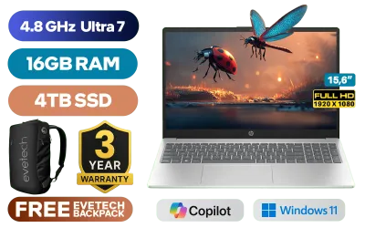 HP 15-fd1035ni Intel Core Ultra 7 155H up to 4.8GHz Processor, 24MB Cache, 16x Cores, 22x Threads / 16GB DDR5 RAM / 4TB Ultra-Fast NVME SSD / 15.6" FHD (1920 x 1080) Anti-Glare IPS-Level Display / Integrated Intel Arc Graphics / Windows 11 Home 64bit / Realtek RTL8852BE-VT WiFi 6 Wireless LAN / Bluetooth 5.4 / HD 720p Web Camera / 2 x USB Type-A / 1 x USB Type-C (Power Delivery, DisplayPort 1.4b) / 1 x HDMI / 1x Headphone And Microphone Combo Jack / Full-Size Keyboard / Dual Speakers / HP 15-fd1035ni Intel Core Ultra 7 Laptop DealHP 15-fd1035ni Intel Core Ultra 7 155H up to 4.8GHz Processor, 24MB Cache, 16x Cores, 22x Threads / 16GB DDR5 RAM / 4TB Ultra-Fast NVME SSD / 15.6" FHD (1920 x 1080) Anti-Glare IPS-Level Display / Integrated Intel Arc Graphics / Windows 11 Home 64bit / Realtek RTL8852BE-VT WiFi 6 Wireless LAN / Bluetooth 5.4 / HD 720p Web Camera / 2 x USB Type-A / 1 x USB Type-C (Power Delivery, DisplayPort 1.4b) / 1 x HDMI / 1x Headphone And Microphone Combo Jack / Full-Size Keyboard / Dual Speakers / HP 15-fd1035ni Intel Core Ultra 7 Laptop Deal [C38WVEA/4TB] / 3 YEARS WARRANTY / [+] GET FREE EVETECH NEO Premium Gaming Backpack+ FREE DELIVERY !