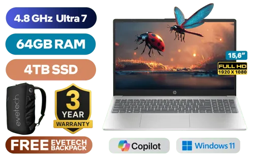 HP 15-fd1035ni Intel Core Ultra 7 155H up to 4.8GHz Processor, 24MB Cache, 16x Cores, 22x Threads / 64GB DDR5 RAM / 4TB Ultra-Fast NVME SSD / 15.6" FHD (1920 x 1080) Anti-Glare IPS-Level Display / Integrated Intel Arc Graphics / Windows 11 Home 64bit / Realtek RTL8852BE-VT WiFi 6 Wireless LAN / Bluetooth 5.4 / HD 720p Web Camera / 2 x USB Type-A / 1 x USB Type-C (Power Delivery, DisplayPort 1.4b) / 1 x HDMI / 1x Headphone And Microphone Combo Jack / Full-Size Keyboard / Dual Speakers / HP 15-fd1035ni Intel Core Ultra 7 Laptop DealHP 15-fd1035ni Intel Core Ultra 7 155H up to 4.8GHz Processor, 24MB Cache, 16x Cores, 22x Threads / 64GB DDR5 RAM / 4TB Ultra-Fast NVME SSD / 15.6" FHD (1920 x 1080) Anti-Glare IPS-Level Display / Integrated Intel Arc Graphics / Windows 11 Home 64bit / Realtek RTL8852BE-VT WiFi 6 Wireless LAN / Bluetooth 5.4 / HD 720p Web Camera / 2 x USB Type-A / 1 x USB Type-C (Power Delivery, DisplayPort 1.4b) / 1 x HDMI / 1x Headphone And Microphone Combo Jack / Full-Size Keyboard / Dual Speakers / HP 15-fd1035ni Intel Core Ultra 7 Laptop Deal [C38WVEA/64GB/4TB] / 3 YEARS WARRANTY / [+] GET FREE EVETECH NEO Premium Gaming Backpack+ FREE DELIVERY !