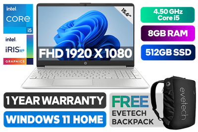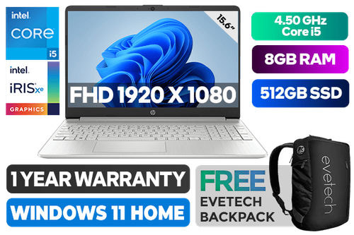 HP Laptop 15s-fq4009ni 6X7P6EA 11th Gen Intel Tiger Lake Core i5-1155G7 up to 4.5GHz Processor, 8MB Cache, 4x Cores, 8x Threads / 8GB DDR4 RAM / 512GB Ultra-Fast NVME SSD / 15.6" FHD 1920 x 1080 Anti-Glare Display / Integrated Intel Iris Xe Graphics, DirectX 12 Support / Windows 11 Home 64bit / 802.11ac Wireless LAN / Bluetooth 4.2 / 2 x USB Type-A / 1 x USB Type-C / 1 x HDMI / Multi-format SD Card Reader / 1x Headphone And Microphone Combo Jack / HP True Vision 720p HD camera with integrated dual array digital microphones / Full-size Natural Silver Keyboard with Numeric Keypad - No Backlit / No DVD Drive Included / Up to 7 hours battery life / Supports battery fast charge: approximately 50% in 45 minutes / 1 Year Warranty / HP 15s-fq4009ni 11th Gen Intel Core i5 Laptop DealHP Laptop 15s-fq4009ni 6X7P6EA 11th Gen Intel Tiger Lake Core i5-1155G7 up to 4.5GHz Processor, 8MB Cache, 4x Cores, 8x Threads / 8GB DDR4 RAM / 512GB Ultra-Fast NVME SSD / 15.6" FHD 1920 x 1080 Anti-Glare Display / Integrated Intel Iris Xe Graphics, DirectX 12 Support / Windows 11 Home 64bit / 802.11ac Wireless LAN / Bluetooth 4.2 / 2 x USB Type-A / 1 x USB Type-C / 1 x HDMI / Multi-format SD Card Reader / 1x Headphone And Microphone Combo Jack / HP True Vision 720p HD camera with integrated dual array digital microphones / Full-size Natural Silver Keyboard with Numeric Keypad - No Backlit / No DVD Drive Included / Up to 7 hours battery life / Supports battery fast charge: approximately 50% in 45 minutes / 1 Year Warranty / HP 15s-fq4009ni 11th Gen Intel Core i5 Laptop Deal [6X7P6EA] / [+] GET FREE EVETECH NEO Premium Gaming Backpack+ FREE DELIVERY !