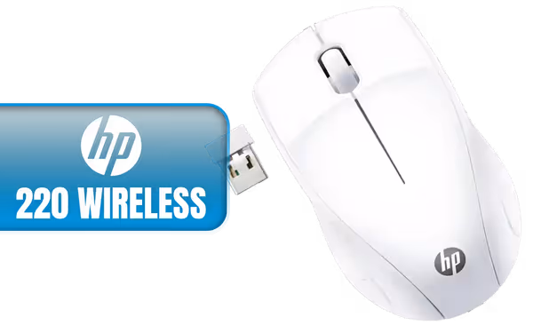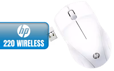 HP 220 Wireless Mouse - Snow White / 2.4 GHz Wireless Dongle / 15 Month Battery Life / Blue LED Technology / Ambidextrous Design / 3 Buttons / Up to 1600 DPI / 1x AA Battery Included / 7KX12AA