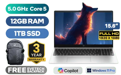 HP 250R G10 Intel® Core™ 5-120U up to 5.0GHz Processor, 12MB Cache, 10x Cores, 12x Threads / 12GB DDR4 RAM / 1TB Ultra-Fast NVMe SSD / 15.6" FHD (1920 x 1080) IPS-level Display / Integrated Intel Graphics / <span style="font-size: 20px; color: #00BFFF; font-weight: bold;">Windows 11 Professional (64bit)</span> / Realtek 8852BE-VT Wi-Fi 6 Wireless LAN / Bluetooth 5.4 / 1080p FHD Camera / 2x USB Type-A / 1x USB Type-C / 1x HDMI / 1x Microphone and Headphone Combo Jack / US Full Keyboard / 1-Year Warranty / HP 250R G10 Core 5 120U Laptop DealHP 250R G10 Intel® Core™ 5-120U up to 5.0GHz Processor, 12MB Cache, 10x Cores, 12x Threads / 12GB DDR4 RAM / 1TB Ultra-Fast NVMe SSD / 15.6" FHD (1920 x 1080) IPS-level Display / Integrated Intel Graphics / Windows 11 Professional (64bit) / Realtek 8852BE-VT Wi-Fi 6 Wireless LAN / Bluetooth 5.4 / 1080p FHD Camera / 2x USB Type-A / 1x USB Type-C / 1x HDMI / 1x Microphone and Headphone Combo Jack / US Full Keyboard / 1-Year Warranty / HP 250R G10 Core 5 120U Laptop Deal [C78E7AT/12GB/1TB] / 3 YEARS WARRANTY / [+] GET FREE EVETECH FLUX Premium Gaming Backpack+ FREE DELIVERY !
