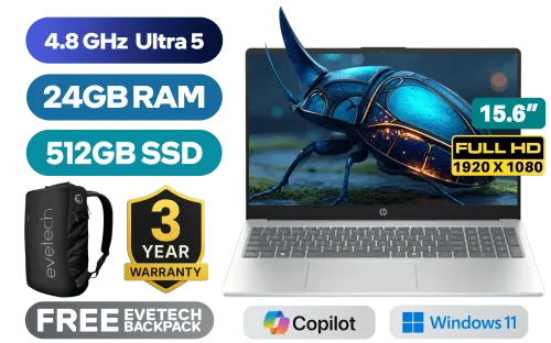 HP laptop AI 15-fd2009ni Intel Core Ultra 5-225U up to 4.8GHz, 12MB Cache Processor, 12x Cores, 14x Threads / 24GB DDR5 RAM / 512GB Ultra-Fast NVME SSD / 15.6" FHD (1920x1080) Anti-glare Display / Integrated Intel® Graphics / Windows 11 Home (64bit) / RealTek WiFi 6 8852BE-VT Wireless LAN / Bluetooth 5.4 / 1080p FHD Camera / 2x USB Type-A / 1x USB Type-C (Supports DisplayPort 2.1 / Power Delivery 3.1) / 1x HDMI / 1x Microphone and Headphone Combo Jack / Dual Speakers / HP laptop AI 15 Core Ultra 5 DealHP laptop AI 15-fd2009ni Intel Core Ultra 5-225U up to 4.8GHz, 12MB Cache Processor, 12x Cores, 14x Threads / 24GB DDR5 RAM / 512GB Ultra-Fast NVME SSD / 15.6" FHD (1920x1080) Anti-glare Display / Integrated Intel® Graphics / Windows 11 Home (64bit) / RealTek WiFi 6 8852BE-VT Wireless LAN / Bluetooth 5.4 / 1080p FHD Camera / 2x USB Type-A / 1x USB Type-C (Supports DisplayPort 2.1 / Power Delivery 3.1) / 1x HDMI / 1x Microphone and Headphone Combo Jack / Dual Speakers / HP laptop AI 15 Core Ultra 5 Deal [D34JTEA] / 3 YEARS WARRANTY / [+] GET FREE EVETECH NEO Premium Gaming Backpack+ FREE DELIVERY !
