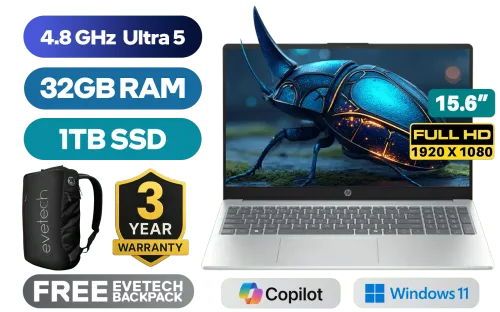 HP laptop AI 15-fd2009ni Intel Core Ultra 5-225U up to 4.8GHz, 12MB Cache Processor, 12x Cores, 14x Threads / 32GB DDR5 RAM / 1TB Ultra-Fast NVME SSD / 15.6" FHD (1920x1080) Anti-glare Display / Integrated Intel® Graphics / Windows 11 Home (64bit) / RealTek WiFi 6 8852BE-VT Wireless LAN / Bluetooth 5.4 / 1080p FHD Camera / 2x USB Type-A / 1x USB Type-C (Supports DisplayPort 2.1 / Power Delivery 3.1) / 1x HDMI / 1x Microphone and Headphone Combo Jack / Dual Speakers / HP laptop AI 15 Core Ultra 5 DealHP laptop AI 15-fd2009ni Intel Core Ultra 5-225U up to 4.8GHz, 12MB Cache Processor, 12x Cores, 14x Threads / 32GB DDR5 RAM / 1TB Ultra-Fast NVME SSD / 15.6" FHD (1920x1080) Anti-glare Display / Integrated Intel® Graphics / Windows 11 Home (64bit) / RealTek WiFi 6 8852BE-VT Wireless LAN / Bluetooth 5.4 / 1080p FHD Camera / 2x USB Type-A / 1x USB Type-C (Supports DisplayPort 2.1 / Power Delivery 3.1) / 1x HDMI / 1x Microphone and Headphone Combo Jack / Dual Speakers / HP laptop AI 15 Core Ultra 5 Deal [D34JTEA/32GB/1TB] / 3 YEARS WARRANTY / [+] GET FREE EVETECH NEO Premium Gaming Backpack+ FREE DELIVERY !