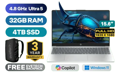 HP laptop AI 15-fd2009ni Intel Core Ultra 5-225U up to 4.8GHz, 12MB Cache Processor, 12x Cores, 14x Threads / 32GB DDR5 RAM / 4TB Ultra-Fast NVME SSD / 15.6" FHD (1920x1080) Anti-glare Display / Integrated Intel® Graphics / Windows 11 Home (64bit) / RealTek WiFi 6 8852BE-VT Wireless LAN / Bluetooth 5.4 / 1080p FHD Camera / 2x USB Type-A / 1x USB Type-C (Supports DisplayPort 2.1 / Power Delivery 3.1) / 1x HDMI / 1x Microphone and Headphone Combo Jack / Dual Speakers / HP laptop AI 15 Core Ultra 5 DealHP laptop AI 15-fd2009ni Intel Core Ultra 5-225U up to 4.8GHz, 12MB Cache Processor, 12x Cores, 14x Threads / 32GB DDR5 RAM / 4TB Ultra-Fast NVME SSD / 15.6" FHD (1920x1080) Anti-glare Display / Integrated Intel® Graphics / Windows 11 Home (64bit) / RealTek WiFi 6 8852BE-VT Wireless LAN / Bluetooth 5.4 / 1080p FHD Camera / 2x USB Type-A / 1x USB Type-C (Supports DisplayPort 2.1 / Power Delivery 3.1) / 1x HDMI / 1x Microphone and Headphone Combo Jack / Dual Speakers / HP laptop AI 15 Core Ultra 5 Deal [D34JTEA/32GB/4TB] / 3 YEARS WARRANTY / [+] GET FREE EVETECH NEO Premium Gaming Backpack+ FREE DELIVERY !
