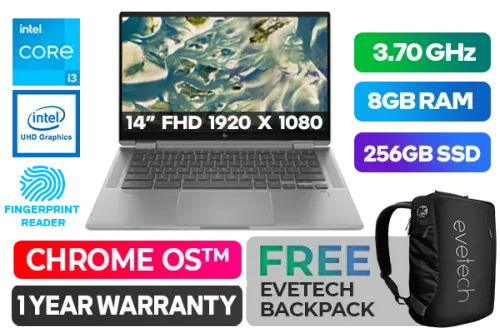 HP Chromebook x360 14c-cc0000ni 4U0D4EA 11th Generation i3-1125G4 up to 3.70GHz, 8MB Cache Processor, 4x Cores, 8x Threads / 8GB DDR4 RAM / 256GB Ultra-Fast SSD / 14" FHD 1920 x 1080 micro-edge, Corning Gorilla Glass 5⢠IPS Display With Touchscreen / Intel® UHD Graphics / Intel Wi-Fi 6 AX201 Wireless LAN / Bluetooth 5 / Chrome OS⢠/ HP Wide Vision 720p HD camera with integrated dual array digital microphones / 1x SuperSpeed USB Type-A / 2x SuperSpeed USB Type-C / 1x microSD media card reader / 1x Headphone and Microphone Audio Combo Jack / No DVD Drive Included / Audio by Bang & Olufsen / Finger Print Reader / 1 Year Warranty / HP Chromebook x360 14c-cc0000ni Intel Core i3 Touchscreen Laptop DealHP Chromebook x360 14c-cc0000ni 4U0D4EA 11th Generation i3-1125G4 up to 3.70GHz, 8MB Cache Processor, 4x Cores, 8x Threads / 8GB DDR4 RAM / 256GB Ultra-Fast SSD / 14" FHD 1920 x 1080 micro-edge, Corning Gorilla Glass 5⢠IPS Display With Touchscreen / Intel® UHD Graphics / Intel Wi-Fi 6 AX201 Wireless LAN / Bluetooth 5 / Chrome OS⢠/ HP Wide Vision 720p HD camera with integrated dual array digital microphones / 1x SuperSpeed USB Type-A / 2x SuperSpeed USB Type-C / 1x microSD media card reader / 1x Headphone and Microphone Audio Combo Jack / No DVD Drive Included / Audio by Bang & Olufsen / Finger Print Reader / 1 Year Warranty / HP Chromebook x360 14c-cc0000ni Intel Core i3 Touchscreen Laptop Deal [4U0D4EA] / [+] GET FREE EVETECH NEO Premium Gaming Backpack+ FREE DELIVERY !