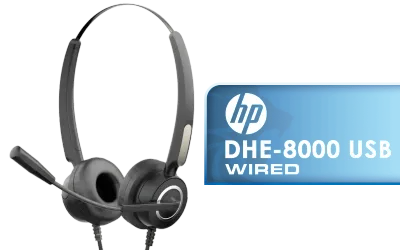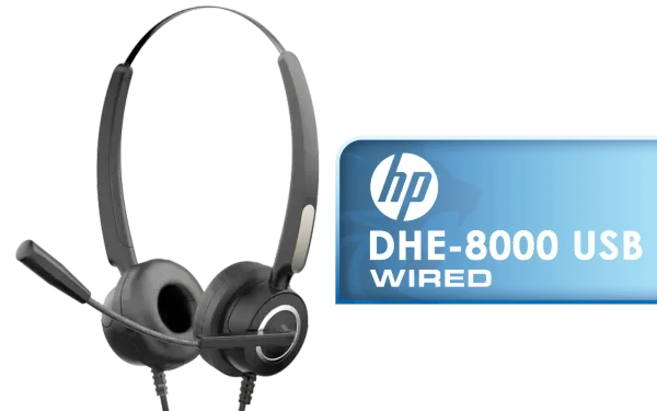 HP DHE-8000 USB Phone Operators Headphone — Black - High Quality Anti-rocking - Low Interference PU Earphone Cable - Clear Voice Communication - Rotating Ear Cups - For PC or Mac - Omnidirectional Microphone / DHE-8000 / DHE-8000