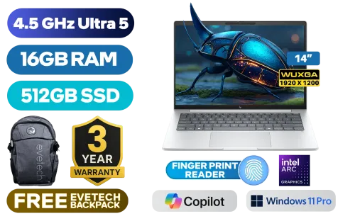 HP EliteBook 8 G1i Intel® Core™ Ultra 5-226V up to 4.5GHz Processor, 8MB Cache, 8x Cores, 8x Threads / 16GB LPDDR5X RAM / 512GB Ultra-Fast NVME SSD / 14" WUXGA (1920 x 1200) Anti-Glare IPS-Level Display / Integrated Intel™ Arc Graphics / <span style="font-size: 20px; color: #00BFFF; font-weight: bold;">Windows 11 Professional (64bit)</span> / Intel WiFi 7 BE201 Wireless LAN / Bluetooth 5.4 / 5MP IR AI Camera / 2 x USB Type-A / 3 x USB Type C (Thunderbolt™ 4 / Power Delivery / DisplayPort™) / 1 x HDMI / 1x Headphone And Microphone Combo Jack / White Backlit Keyboard / Poly Studio Dual Stereo Speakers / Fingerprint / HP EliteBook 8 G1i Intel® Core™ Ultra 5 LaptopHP EliteBook 8 G1i Intel® Core™ Ultra 5-226V up to 4.5GHz Processor, 8MB Cache, 8x Cores, 8x Threads / 16GB LPDDR5X RAM / 512GB Ultra-Fast NVME SSD / 14" WUXGA (1920 x 1200) Anti-Glare IPS-Level Display / Integrated Intel™ Arc Graphics / Windows 11 Professional (64bit) / Intel WiFi 7 BE201 Wireless LAN / Bluetooth 5.4 / 5MP IR AI Camera / 2 x USB Type-A / 3 x USB Type C (Thunderbolt™ 4 / Power Delivery / DisplayPort™) / 1 x HDMI / 1x Headphone And Microphone Combo Jack / White Backlit Keyboard / Poly Studio Dual Stereo Speakers / Fingerprint / HP EliteBook 8 G1i Intel® Core™ Ultra 5 Laptop [AD3U1ET] / 3 YEARS WARRANTY / [+] GET FREE EVETECH FLUX Premium Gaming Backpack+ FREE DELIVERY !