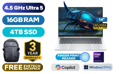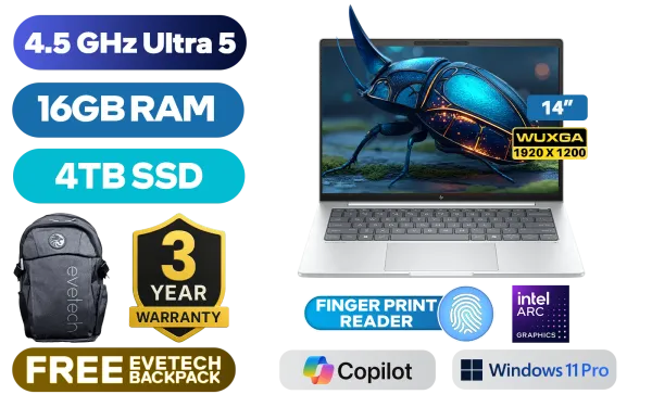 HP EliteBook 8 G1i Intel® Core™ Ultra 5-226V up to 4.5GHz Processor, 8MB Cache, 8x Cores, 8x Threads / 16GB LPDDR5X RAM / 4TB Ultra-Fast NVME SSD / 14" WUXGA (1920 x 1200) Anti-Glare IPS-Level Display / Integrated Intel™ Arc Graphics / <span style="font-size: 20px; color: #00BFFF; font-weight: bold;">Windows 11 Professional (64bit)</span> / Intel WiFi 7 BE201 Wireless LAN / Bluetooth 5.4 / 5MP IR AI Camera / 2 x USB Type-A / 3 x USB Type C (Thunderbolt™ 4 / Power Delivery / DisplayPort™) / 1 x HDMI / 1x Headphone And Microphone Combo Jack / White Backlit Keyboard / Poly Studio Dual Stereo Speakers / Fingerprint / HP EliteBook 8 G1i Intel® Core™ Ultra 5 LaptopHP EliteBook 8 G1i Intel® Core™ Ultra 5-226V up to 4.5GHz Processor, 8MB Cache, 8x Cores, 8x Threads / 16GB LPDDR5X RAM / 4TB Ultra-Fast NVME SSD / 14" WUXGA (1920 x 1200) Anti-Glare IPS-Level Display / Integrated Intel™ Arc Graphics / Windows 11 Professional (64bit) / Intel WiFi 7 BE201 Wireless LAN / Bluetooth 5.4 / 5MP IR AI Camera / 2 x USB Type-A / 3 x USB Type C (Thunderbolt™ 4 / Power Delivery / DisplayPort™) / 1 x HDMI / 1x Headphone And Microphone Combo Jack / White Backlit Keyboard / Poly Studio Dual Stereo Speakers / Fingerprint / HP EliteBook 8 G1i Intel® Core™ Ultra 5 Laptop [AD3U1ET/4TB] / 3 YEARS WARRANTY / [+] GET FREE EVETECH FLUX Premium Gaming Backpack+ FREE DELIVERY !