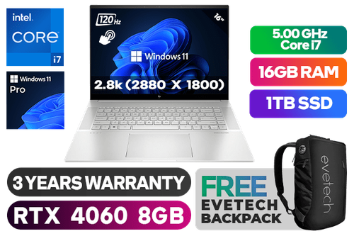 [TOUCHSCREEN] HP ENVY Laptop 16-h1000ni 13th Gen Intel Core i7-13700H up to 5.00GHz Processor, 24MB Cache, 14x Cores, 20x Threads / 16GB DDR5 RAM / 1TB Ultra-Fast NVMe SSD / 16" 2.8K (2880 x 1800) OLED Micro-edge 120Hz Display with touch screen / NVIDIA 40 Series GeForce RTX 4060 8GB GDDR6 Dedicated Graphics Card / <span style="font-size: 20px; color: #00BFFF; font-weight: bold;">Windows 11 Professional (64bit)</span> / Intel Wi-Fi 6E Wireless LAN / Bluetooth 5.3 / HP True Vision 5MP IR camera with Integrated Dual Array Digital Microphone / 1x SuperSpeed USB Type-A / 2x SuperSpeed USB Type-C (DisplayPort 1.4) / 1x HDMI 2.1 / 1x Headphone and Microphone Combo Jack / 1x MicroSD Media Card Reader / No DVD Drive Included / White Backlit Keyboard / Bang & Olufsen, Dual speakers, HP Audio Boost / HP ENVY Laptop 16-h1000ni 13th Gen Intel Core i7 Laptop Deal[TOUCHSCREEN] HP ENVY Laptop 16-h1000ni 13th Gen Intel Core i7-13700H up to 5.00GHz Processor, 24MB Cache, 14x Cores, 20x Threads / 16GB DDR5 RAM / 1TB Ultra-Fast NVMe SSD / 16" 2.8K (2880 x 1800) OLED Micro-edge 120Hz Display with touch screen / NVIDIA 40 Series GeForce RTX 4060 8GB GDDR6 Dedicated Graphics Card / Windows 11 Professional (64bit) / Intel Wi-Fi 6E Wireless LAN / Bluetooth 5.3 / HP True Vision 5MP IR camera with Integrated Dual Array Digital Microphone / 1x SuperSpeed USB Type-A / 2x SuperSpeed USB Type-C (DisplayPort 1.4) / 1x HDMI 2.1 / 1x Headphone and Microphone Combo Jack / 1x MicroSD Media Card Reader / No DVD Drive Included / White Backlit Keyboard / Bang & Olufsen, Dual speakers, HP Audio Boost / HP ENVY Laptop 16-h1000ni 13th Gen Intel Core i7 Laptop Deal [804F2EA] / 3 YEARS WARRANTY / [+] GET FREE EVETECH NEO Premium Gaming Backpack+ FREE DELIVERY !