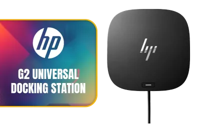 HP G2 USB-C/A Universal Docking Station / 1x USB-C data/power (15W) / 1x USB-C host cable (1m) / 2x USB 3.0 charging ports / 1x Combo audio jack / 2x DisplayPort outputs / 1x RJ45 Ethernet port / 1x HDMI 2.0 port / 1x Standard lock slot / Supports 2 monitors + laptop screen / 5TW13AA