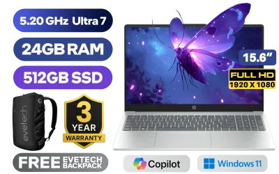 HP Laptop AI 15-fd2003ni Intel® Core™ Ultra 7-255U up to 5.20GHz, 12MB Cache Processor, 12x Cores, 14x Threads / 24GB DDR5 RAM / 512GB Ultra-Fast NVME SSD / 15.6" FHD (1920 x 1080) Anti-glare IPS-Level Display / Integrated Intel® Graphics / Windows 11 Home (64bit) / Realtek 8852BE-VT Wi-Fi 6 Wireless LAN / Bluetooth 5.4 / 1080p FHD Camera / 2x USB Type-A / 1x USB Type-C (Power Delivery & DisplayPort) / 1x HDMI / 1x Microphone and Headphone Combo Jack / Kensington Lock / US Full Non backlit Keyboard / Dual Integrated Speakers / HP Laptop AI 15-fd2003ni Core Ultra 7 Laptop DealHP Laptop AI 15-fd2003ni Intel® Core™ Ultra 7-255U up to 5.20GHz, 12MB Cache Processor, 12x Cores, 14x Threads / 24GB DDR5 RAM / 512GB Ultra-Fast NVME SSD / 15.6" FHD (1920 x 1080) Anti-glare IPS-Level Display / Integrated Intel® Graphics / Windows 11 Home (64bit) / Realtek 8852BE-VT Wi-Fi 6 Wireless LAN / Bluetooth 5.4 / 1080p FHD Camera / 2x USB Type-A / 1x USB Type-C (Power Delivery & DisplayPort) / 1x HDMI / 1x Microphone and Headphone Combo Jack / Kensington Lock / US Full Non backlit Keyboard / Dual Integrated Speakers / HP Laptop AI 15-fd2003ni Core Ultra 7 Laptop Deal [D34JMEA] / 3 YEARS WARRANTY / [+] GET FREE EVETECH NEO Premium Gaming Backpack+ FREE DELIVERY !