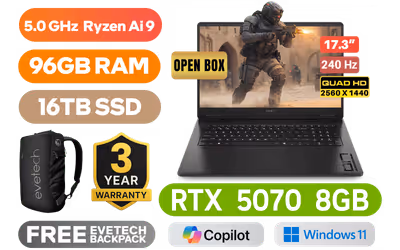 [OPEN BOX] HP OMEN Gaming Laptop 17-db1005ni AMD Ryzen AI 9 365 up to 5.0GHz Processor, 34MB Cache, 10x Cores, 20x Threads / 96GB DDR5 RAM / 16TB Ultra-Fast NVME SSD / 17.3" QHD (2560 x 1440) 240Hz, Anti-glare Display / NVIDIA GeForce RTX 5070 8GB GDDR7 Dedicated Graphics / HP 1080p FHD IR Camera With Privacy Shutter / Windows 11 Home (64bit) / RealTek 8852BE-VT Wi-Fi 6 Wireless LAN / Bluetooth 5.4 / 3x USB Type-A / 1x USB Type-C with DisplayPort™ / 1x HDMI 2.1 / RJ-45 Ethernet Port / 1x Headphone and Microphone Combo Jack / 1-Zone RGB Backlit Keyboard / Dual Integrated speakers With HyperX Audio / HP OMEN Gaming Laptop 17-db1005ni AMD Ryzen AI 9 365 RTX 5070 Gaming Laptop Deal[OPEN BOX] HP OMEN Gaming Laptop 17-db1005ni AMD Ryzen AI 9 365 up to 5.0GHz Processor, 34MB Cache, 10x Cores, 20x Threads / 96GB DDR5 RAM / 16TB Ultra-Fast NVME SSD / 17.3" QHD (2560 x 1440) 240Hz, Anti-glare Display / NVIDIA GeForce RTX 5070 8GB GDDR7 Dedicated Graphics / HP 1080p FHD IR Camera With Privacy Shutter / Windows 11 Home (64bit) / RealTek 8852BE-VT Wi-Fi 6 Wireless LAN / Bluetooth 5.4 / 3x USB Type-A / 1x USB Type-C with DisplayPort™ / 1x HDMI 2.1 / RJ-45 Ethernet Port / 1x Headphone and Microphone Combo Jack / 1-Zone RGB Backlit Keyboard / Dual Integrated speakers With HyperX Audio / HP OMEN Gaming Laptop 17-db1005ni AMD Ryzen AI 9 365 RTX 5070 Gaming Laptop Deal [BQ7W9EA/96GB/16TB] / [+] GET FREE EVETECH NEO Premium Gaming Backpack / 3 YEARS WARRANTY / [+]Get Resident Evil: Requiem with select GeForce RTX 50 Series (Standard Edition)+ FREE DELIVERY !