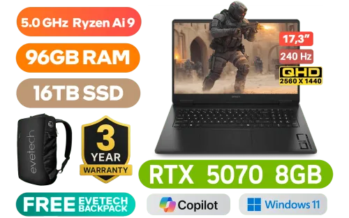 HP OMEN Gaming Laptop 17-db1005ni AMD Ryzen AI 9 365 up to 5.0GHz Processor, 34MB Cache, 10x Cores, 20x Threads / 96GB DDR5 RAM / 16TB Ultra-Fast NVME SSD / 17.3" QHD (2560 x 1440) 240Hz, Anti-glare Display / NVIDIA GeForce RTX 5070 8GB GDDR7 Dedicated Graphics / HP 1080p FHD IR Camera With Privacy Shutter / Windows 11 Home (64bit) / RealTek 8852BE-VT Wi-Fi 6 Wireless LAN / Bluetooth 5.4 / 3x USB Type-A / 1x USB Type-C with DisplayPort™ / 1x HDMI 2.1 / RJ-45 Ethernet Port / 1x Headphone and Microphone Combo Jack / 1-Zone RGB Backlit Keyboard / Dual Integrated speakers With HyperX Audio / HP OMEN Gaming Laptop 17-db1005ni AMD Ryzen AI 9 365 RTX 5070 Gaming Laptop DealHP OMEN Gaming Laptop 17-db1005ni AMD Ryzen AI 9 365 up to 5.0GHz Processor, 34MB Cache, 10x Cores, 20x Threads / 96GB DDR5 RAM / 16TB Ultra-Fast NVME SSD / 17.3" QHD (2560 x 1440) 240Hz, Anti-glare Display / NVIDIA GeForce RTX 5070 8GB GDDR7 Dedicated Graphics / HP 1080p FHD IR Camera With Privacy Shutter / Windows 11 Home (64bit) / RealTek 8852BE-VT Wi-Fi 6 Wireless LAN / Bluetooth 5.4 / 3x USB Type-A / 1x USB Type-C with DisplayPort™ / 1x HDMI 2.1 / RJ-45 Ethernet Port / 1x Headphone and Microphone Combo Jack / 1-Zone RGB Backlit Keyboard / Dual Integrated speakers With HyperX Audio / HP OMEN Gaming Laptop 17-db1005ni AMD Ryzen AI 9 365 RTX 5070 Gaming Laptop Deal [BQ7W9EA/96GB/16TB] / [+] GET FREE EVETECH NEO Premium Gaming Backpack / 3 YEARS WARRANTY / [+]Get Resident Evil: Requiem with select GeForce RTX 50 Series (Standard Edition)+ FREE DELIVERY !