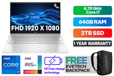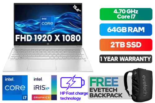 HP Pavilion 15-eg2019ni 7K8A0EA 12th Gen Intel® Core™ i7-1255U up to 4.70GHz Processor, 12MB Cache, 10x Cores, 12x Threads / 64GB DDR4 RAM / 2TB Ultra-Fast NVMe SSD / 15.6" FHD 1920x1080 Anti-glare IPS-level Display / Integrated Intel® Iris® Xe Graphics, DirectX 12 Support / Windows 11 Home (64bit) / MediaTek Wi-Fi 6 Wireless LAN / Bluetooth 5.2 / HP Wide Vision 720p HD Camera with Integrated Dual Array Digital Microphones / 2x SuperSpeed USB Type-A / 1x USB Type-C / 1x HDMI / 1x Headphone and Microphone Audio Combo Jack / No DVD Drive Included / White Backlit Keyboard / 1 Year Warranty / HP Pavilion 15-eg2019ni 12th Gen Intel® Core™ i7 laptop DealHP Pavilion 15-eg2019ni 7K8A0EA 12th Gen Intel® Core™ i7-1255U up to 4.70GHz Processor, 12MB Cache, 10x Cores, 12x Threads / 64GB DDR4 RAM / 2TB Ultra-Fast NVMe SSD / 15.6" FHD 1920x1080 Anti-glare IPS-level Display / Integrated Intel® Iris® Xe Graphics, DirectX 12 Support / Windows 11 Home (64bit) / MediaTek Wi-Fi 6 Wireless LAN / Bluetooth 5.2 / HP Wide Vision 720p HD Camera with Integrated Dual Array Digital Microphones / 2x SuperSpeed USB Type-A / 1x USB Type-C / 1x HDMI / 1x Headphone and Microphone Audio Combo Jack / No DVD Drive Included / White Backlit Keyboard / 1 Year Warranty / HP Pavilion 15-eg2019ni 12th Gen Intel® Core™ i7 laptop Deal [7K8A0EA/64GB/2TB] / [+] GET FREE EVETECH NEO Premium Gaming Backpack+ FREE DELIVERY !