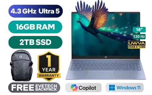 HP Pavilion 16-af0013ni Intel® Core™ Ultra 5-125U up to 4.3GHz Processor, 12MB Cache, 12x Cores, 14x Threads / 16GB LPDDR5x RAM / 2TB Ultra-Fast NVMe SSD / 16" UWVA (2048x1280) 120Hz OLED Display / Integrated Intel® Graphics / Windows 11 Home (64bit) / Intel WiFi 6E AX211 Wireless LAN / Bluetooth 5.3 / 1080p FHD IR Camera / 2x USB Type-A / 2x USB Type-C (Supports DisplayPort 1.4 / Power Delivery) / 1x HDMI / 1x Headphone and Microphone Combo Jack / White Backlit Keyboard / Dual Stereo Speakers / 1 Year Warranty / HP Pavilion 16-af0013ni Intel Core Ultra 5 Laptop DealHP Pavilion 16-af0013ni Intel® Core™ Ultra 5-125U up to 4.3GHz Processor, 12MB Cache, 12x Cores, 14x Threads / 16GB LPDDR5x RAM / 2TB Ultra-Fast NVMe SSD / 16" UWVA (2048x1280) 120Hz OLED Display / Integrated Intel® Graphics / Windows 11 Home (64bit) / Intel WiFi 6E AX211 Wireless LAN / Bluetooth 5.3 / 1080p FHD IR Camera / 2x USB Type-A / 2x USB Type-C (Supports DisplayPort 1.4 / Power Delivery) / 1x HDMI / 1x Headphone and Microphone Combo Jack / White Backlit Keyboard / Dual Stereo Speakers / 1 Year Warranty / HP Pavilion 16-af0013ni Intel Core Ultra 5 Laptop Deal [B22Y2EA-1yr/2TB] / [+] GET FREE EVETECH FLUX Premium Gaming Backpack+ FREE DELIVERY !