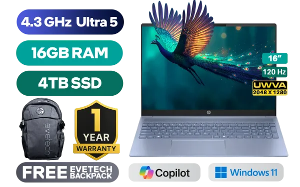 HP Pavilion 16-af0013ni Intel® Core™ Ultra 5-125U up to 4.3GHz Processor, 12MB Cache, 12x Cores, 14x Threads / 16GB LPDDR5x RAM / 4TB Ultra-Fast NVMe SSD / 16" UWVA (2048x1280) 120Hz OLED Display / Integrated Intel® Graphics / Windows 11 Home (64bit) / Intel WiFi 6E AX211 Wireless LAN / Bluetooth 5.3 / 1080p FHD IR Camera / 2x USB Type-A / 2x USB Type-C (Supports DisplayPort 1.4 / Power Delivery) / 1x HDMI / 1x Headphone and Microphone Combo Jack / White Backlit Keyboard / Dual Stereo Speakers / 1 Year Warranty / HP Pavilion 16-af0013ni Intel Core Ultra 5 Laptop DealHP Pavilion 16-af0013ni Intel® Core™ Ultra 5-125U up to 4.3GHz Processor, 12MB Cache, 12x Cores, 14x Threads / 16GB LPDDR5x RAM / 4TB Ultra-Fast NVMe SSD / 16" UWVA (2048x1280) 120Hz OLED Display / Integrated Intel® Graphics / Windows 11 Home (64bit) / Intel WiFi 6E AX211 Wireless LAN / Bluetooth 5.3 / 1080p FHD IR Camera / 2x USB Type-A / 2x USB Type-C (Supports DisplayPort 1.4 / Power Delivery) / 1x HDMI / 1x Headphone and Microphone Combo Jack / White Backlit Keyboard / Dual Stereo Speakers / 1 Year Warranty / HP Pavilion 16-af0013ni Intel Core Ultra 5 Laptop Deal [B22Y2EA-1yr/4TB] + FREE DELIVERY !