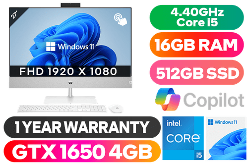 TOUCHSCREEN HP Pavilion 27-ca2002ni 7Z8V6EA AIO 13th Gen Intel Core i5-13400T up to 4.40GHz Processor, 20MB Cache, 10x Cores, 16x Threads / 16GB DDR4 RAM / 512GB Ultra-Fast NVMe SSD / 27" FHD (1920 x 1080) IPS-Level Touchscreen Display / NVIDIA GeForce GTX 1650 4GB GDDR6 DX12 Dedicated Graphics With Desktop Level Performance / Windows 11 Home (64bit) / Dual Band WiFi 6 Wireless LAN / Bluetooth 5.2 / HP True Vision 5 MP IR privacy camera with temporal noise reduction integrated dual array digital microphones / 4x USB Type-A / 1x USB Type-C / 1 HDMI-out 1.4; 1 HDMI-in 1.4b / 1 x Headphone & Microphone Audio Combo Jack / 1 YEAR WARRANTY / HP 710 White Wireless Keyboard And Mouse Combo / HP Pavilion 27-ca2002ni 13th Gen Intel Core i5 All-in-One PC DealTOUCHSCREEN HP Pavilion 27-ca2002ni 7Z8V6EA AIO 13th Gen Intel Core i5-13400T up to 4.40GHz Processor, 20MB Cache, 10x Cores, 16x Threads / 16GB DDR4 RAM / 512GB Ultra-Fast NVMe SSD / 27" FHD (1920 x 1080) IPS-Level Touchscreen Display / NVIDIA GeForce GTX 1650 4GB GDDR6 DX12 Dedicated Graphics With Desktop Level Performance / Windows 11 Home (64bit) / Dual Band WiFi 6 Wireless LAN / Bluetooth 5.2 / HP True Vision 5 MP IR privacy camera with temporal noise reduction integrated dual array digital microphones / 4x USB Type-A / 1x USB Type-C / 1 HDMI-out 1.4; 1 HDMI-in 1.4b / 1 x Headphone & Microphone Audio Combo Jack / 1 YEAR WARRANTY / HP 710 White Wireless Keyboard And Mouse Combo / HP Pavilion 27-ca2002ni 13th Gen Intel Core i5 All-in-One PC Deal [7Z8V6EA] + FREE DELIVERY !