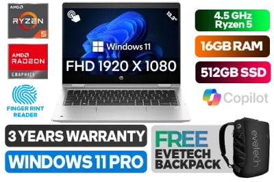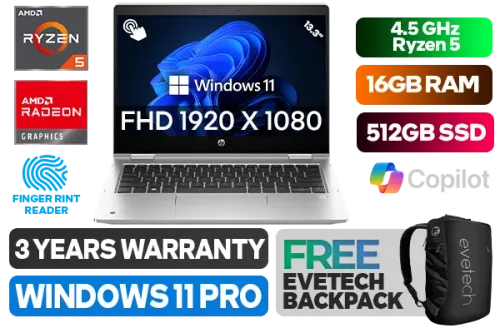 [TOUCHSCREEN] HP ProBook X360 435 G10 AMD Ryzen 5 7530U up to 4.5GHz Processor with AMD Max Boost Clock Technology, 19MB Cache, 6x Cores, 12x Threads / 16GB DDR4 RAM / 512GB Ultra-Fast NVME SSD / 13.3" FHD 1920 x 1080 IPS Display With Touch Screen / Integrated AMD Radeon™ Graphics / <span style="font-size: 20px; color: #00BFFF; font-weight: bold;">Windows 11 Professional (64bit)</span> / MediaTek Wi-Fi 6E RZ616 Wireless LAN / Bluetooth 5.3 / 5 MP Web Camera / 2x USB Type-A / 1x USB Type-C / 1x HDMI / 1x Audio and Microphone Combo Jack / Micro SD Card Reader / Finger Print Reader / Spill Resistant Keyboard / HP Pro X360 435 G10 Ryzen 5 Laptop Laptop Deal[TOUCHSCREEN] HP ProBook X360 435 G10 AMD Ryzen 5 7530U up to 4.5GHz Processor with AMD Max Boost Clock Technology, 19MB Cache, 6x Cores, 12x Threads / 16GB DDR4 RAM / 512GB Ultra-Fast NVME SSD / 13.3" FHD 1920 x 1080 IPS Display With Touch Screen / Integrated AMD Radeon™ Graphics / Windows 11 Professional (64bit) / MediaTek Wi-Fi 6E RZ616 Wireless LAN / Bluetooth 5.3 / 5 MP Web Camera / 2x USB Type-A / 1x USB Type-C / 1x HDMI / 1x Audio and Microphone Combo Jack / Micro SD Card Reader / Finger Print Reader / Spill Resistant Keyboard / HP Pro X360 435 G10 Ryzen 5 Laptop Laptop Deal [9G2J5ET] / 3 YEARS WARRANTY / [+] GET FREE EVETECH NEO Premium Gaming Backpack+ FREE DELIVERY !