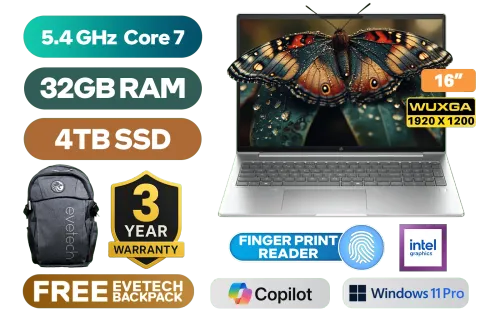 HP ProBook 4 G1i Intel Core 7-150U up to 5.4GHz Processor, 12MB Cache, 10x Cores, 12x Threads / 32GB DDR5 RAM / 4TB Ultra-Fast NVME SSD / 16" WUXGA (1920 x 1200) IPS-Level Display / Integrated Intel Graphics / <span style="font-size: 20px; color: #00BFFF; font-weight: bold;">Windows 11 Professional (64bit)</span> / Intel Wi-Fi 6E AX211 Wireless LAN / Bluetooth 5.3 / 1080P FHD Web camera / 2x USB Type-A / 2x USB Type-C (Supports Power Delivery 3.0 / DisplayPort™ 1.4) / 1x HDMI / 1x RJ-45 / 1x Headphone and Microphone Combo Jack / Fingerprint Reader / White Backlit Keyboard / 2x Stereo Speakers by Poly Studio / HP ProBook 4 G1iR Intel Core 7 Laptop DealHP ProBook 4 G1i Intel Core 7-150U up to 5.4GHz Processor, 12MB Cache, 10x Cores, 12x Threads / 32GB DDR5 RAM / 4TB Ultra-Fast NVME SSD / 16" WUXGA (1920 x 1200) IPS-Level Display / Integrated Intel Graphics / Windows 11 Professional (64bit) / Intel Wi-Fi 6E AX211 Wireless LAN / Bluetooth 5.3 / 1080P FHD Web camera / 2x USB Type-A / 2x USB Type-C (Supports Power Delivery 3.0 / DisplayPort™ 1.4) / 1x HDMI / 1x RJ-45 / 1x Headphone and Microphone Combo Jack / Fingerprint Reader / White Backlit Keyboard / 2x Stereo Speakers by Poly Studio / HP ProBook 4 G1iR Intel Core 7 Laptop Deal [C38L5AT-3YRS/32GB/4TB] / [+] GET FREE EVETECH FLUX Premium Gaming Backpack / 3 YEARS WARRANTY + FREE DELIVERY !