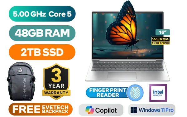 HP PROBOOK 4 G1iR C38L4AT Intel Core 5-120U up to 5.00GHz Processor, 12MB Cache, 10x Cores, 12x Threads / 48GB DDR5 RAM / 2TB Ultra-Fast NVMe SSD / 16" WUXGA (1920 x 1200) IPS-Level Display / Integrated Intel Graphics / <span style="font-size: 20px; color: #00BFFF; font-weight: bold;">Windows 11 Professional (64bit)</span> / 1080p FHD Camera / Intel Wi-Fi 6E AX211 Wireless LAN / Bluetooth 5.3 / 2x USB Type-A / 2x USB Type-C (Supports Power Delivery 3.0 / DisplayPort 1.4) / 1x Microphone and Headphone Combo Jack / 1x RJ-45 / Fingerprint Reader / Kensington Lock / White Backlit Keyboard / Dual Stereo Speakers by Poly Studio / HP PROBOOK 4 G1iR C38L4AT Intel Core 5 Laptop DealHP PROBOOK 4 G1iR C38L4AT Intel Core 5-120U up to 5.00GHz Processor, 12MB Cache, 10x Cores, 12x Threads / 48GB DDR5 RAM / 2TB Ultra-Fast NVMe SSD / 16" WUXGA (1920 x 1200) IPS-Level Display / Integrated Intel Graphics / Windows 11 Professional (64bit) / 1080p FHD Camera / Intel Wi-Fi 6E AX211 Wireless LAN / Bluetooth 5.3 / 2x USB Type-A / 2x USB Type-C (Supports Power Delivery 3.0 / DisplayPort 1.4) / 1x Microphone and Headphone Combo Jack / 1x RJ-45 / Fingerprint Reader / Kensington Lock / White Backlit Keyboard / Dual Stereo Speakers by Poly Studio / HP PROBOOK 4 G1iR C38L4AT Intel Core 5 Laptop Deal [C38L4AT/48GB/2TB] / [+] GET FREE EVETECH FLUX Premium Gaming Backpack / 3 YEARS WARRANTY + FREE DELIVERY !