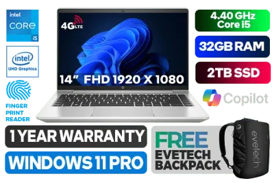 HP ProBook 440 G9 LTE 8A5C4EA 12th Gen Intel Alder Lake Core i5-1235U up to 4.40GHz Processor, 12MB Cache, 10x Cores, 12x Threads / 32GB DDR4 RAM / 2TB Ultra-Fast NVME SSD / 14.0" FHD 1920 x 1080 IPS Anti-Glare Display / Integrated Intel UHD Graphics / No DVD Drive Included / <span style="font-size: 20px; color: #00BFFF; font-weight: bold;">Windows 11 Professional (64bit)</span> / Bluetooth 5.3 / Wi-Fi 6E AX211 Wireless LAN / HD Web camera / 3x USB Type-A / 1x USB Type-C / 1x HDMI / 1x RJ-45 / 1x LTE-Advanced SIMCard Tray / Finger Print Reader / 1x Audio and Microphone Combo Jack / Spill Resistant Keyboard / 1 Year Warranty / HP ProBook 440 G9 LTE Intel Core i5 Laptop DealHP ProBook 440 G9 LTE 8A5C4EA 12th Gen Intel Alder Lake Core i5-1235U up to 4.40GHz Processor, 12MB Cache, 10x Cores, 12x Threads / 32GB DDR4 RAM / 2TB Ultra-Fast NVME SSD / 14.0" FHD 1920 x 1080 IPS Anti-Glare Display / Integrated Intel UHD Graphics / No DVD Drive Included / Windows 11 Professional (64bit) / Bluetooth 5.3 / Wi-Fi 6E AX211 Wireless LAN / HD Web camera / 3x USB Type-A / 1x USB Type-C / 1x HDMI / 1x RJ-45 / 1x LTE-Advanced SIMCard Tray / Finger Print Reader / 1x Audio and Microphone Combo Jack / Spill Resistant Keyboard / 1 Year Warranty / HP ProBook 440 G9 LTE Intel Core i5 Laptop Deal [8A5C4EA/32GB/2TB] / [+] GET FREE EVETECH NEO Premium Gaming Backpack+ FREE DELIVERY !