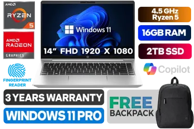 HP ProBook 445 G10 AMD Ryzen 5 7530U up to 4.5GHz Processor, 19MB Cache, 6x Cores, 12x Threads / 16GB DDR4 RAM / 2TB Ultra Fast NVMe SSD / 14" FHD (1920 x 1080) Anti-Glare Display / Integrated Radeon Graphics / <span style="font-size: 20px; color: #00BFFF; font-weight: bold;">Windows 11 Professional (64bit)</span> / MediaTek WiFi 6E Wireless LAN / Bluetooth 5.3 / 720p HD Web camera / 3x USB Type-A / 1x USB Type-C / 1x HDMI / 1x Headphone And Microphone Combo Jack / 1x RJ45 / 1x SIM Slot / Fingerprint Reader / White Backlit Spill Resistant Keyboard / FREE HP Wireless Mouse / Free HP Backpack / HP ProBook 445 G10 Ryzen 5 Laptop DealHP ProBook 445 G10 AMD Ryzen 5 7530U up to 4.5GHz Processor, 19MB Cache, 6x Cores, 12x Threads / 16GB DDR4 RAM / 2TB Ultra Fast NVMe SSD / 14" FHD (1920 x 1080) Anti-Glare Display / Integrated Radeon Graphics / Windows 11 Professional (64bit) / MediaTek WiFi 6E Wireless LAN / Bluetooth 5.3 / 720p HD Web camera / 3x USB Type-A / 1x USB Type-C / 1x HDMI / 1x Headphone And Microphone Combo Jack / 1x RJ45 / 1x SIM Slot / Fingerprint Reader / White Backlit Spill Resistant Keyboard / FREE HP Wireless Mouse / Free HP Backpack / HP ProBook 445 G10 Ryzen 5 Laptop Deal [70Z73AV/2TB] / 3 YEARS WARRANTY + FREE DELIVERY !
