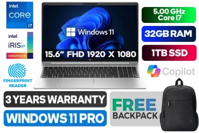 HP ProBook 450 G10 13th Gen Intel Core i7-1355U up to 5.00GHz Processor, 12MB Cache, 10x Cores, 12x Threads / 32GB DDR4 RAM / 1TB Ultra-Fast NVME SSD / 15.6" FHD 1920 x 1080 Anti-Glare Display / Integrated Intel Iris Xe Graphics, DirectX 12 Support / <span style="font-size: 20px; color: #00BFFF; font-weight: bold;">Windows 11 Professional (64bit)</span> / Intel Wi-Fi 6E AX211 Wireless LAN / Bluetooth 5.3 / 720p HD Web camera / 2x USB Type-A / 2x USB Type-C / 1x HDMI / 1x RJ-45 / Micro SD Card Reader / 1x Audio and Microphone Combo Jack / Finger Print Reader / Full Size Spill Resistant Keyboard / FREE HP Wireless Mouse & HP Backpack / HP ProBook 450 G10 Intel Core i7 Laptop DealHP ProBook 450 G10 13th Gen Intel Core i7-1355U up to 5.00GHz Processor, 12MB Cache, 10x Cores, 12x Threads / 32GB DDR4 RAM / 1TB Ultra-Fast NVME SSD / 15.6" FHD 1920 x 1080 Anti-Glare Display / Integrated Intel Iris Xe Graphics, DirectX 12 Support / Windows 11 Professional (64bit) / Intel Wi-Fi 6E AX211 Wireless LAN / Bluetooth 5.3 / 720p HD Web camera / 2x USB Type-A / 2x USB Type-C / 1x HDMI / 1x RJ-45 / Micro SD Card Reader / 1x Audio and Microphone Combo Jack / Finger Print Reader / Full Size Spill Resistant Keyboard / FREE HP Wireless Mouse & HP Backpack / HP ProBook 450 G10 Intel Core i7 Laptop Deal [71H60AV/32GB/1TB] / 3 YEARS WARRANTY + FREE DELIVERY !